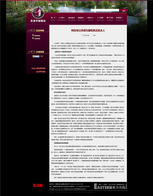該網(wǎng)站主要欄目有:公司簡介、新聞資訊、樓盤展示、服務(wù)中心、人力資源、客戶反饋及聯(lián)系我們。