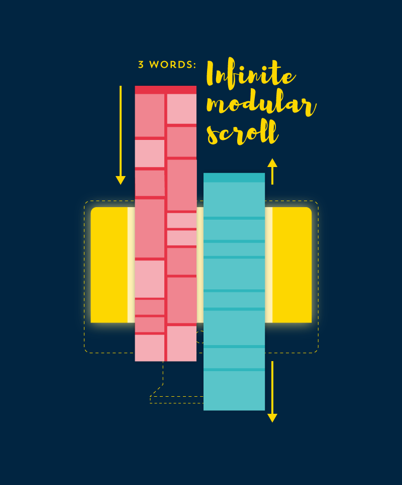模塊化無限滾動也是基于一個相同的假設(shè):向下滾動總是更容易的操作,用戶不用停下來點擊翻頁。這也難怪越來越多的用戶沉迷于這種交互模式。