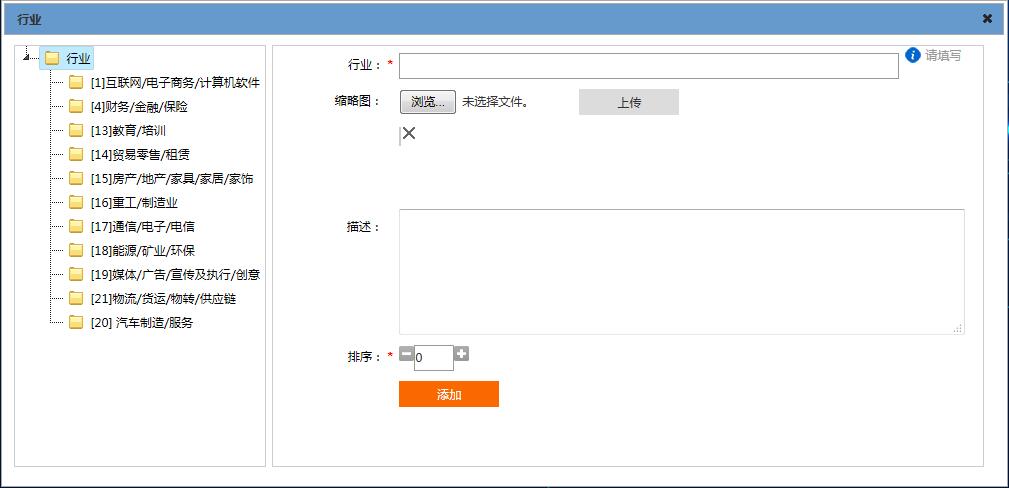 行業(yè)”添加“操作界面