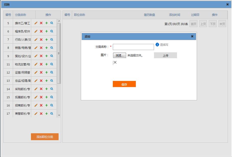 職位分類”添加“操作界面
