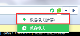 若是360瀏覽器或QQ瀏覽器類似這種帶有IE內(nèi)核和谷歌內(nèi)核的,請按照下圖操作切換到極速模式;因?yàn)榧嫒菽J绞褂玫氖荌E7文檔標(biāo)準(zhǔn),很多網(wǎng)站會不支持。