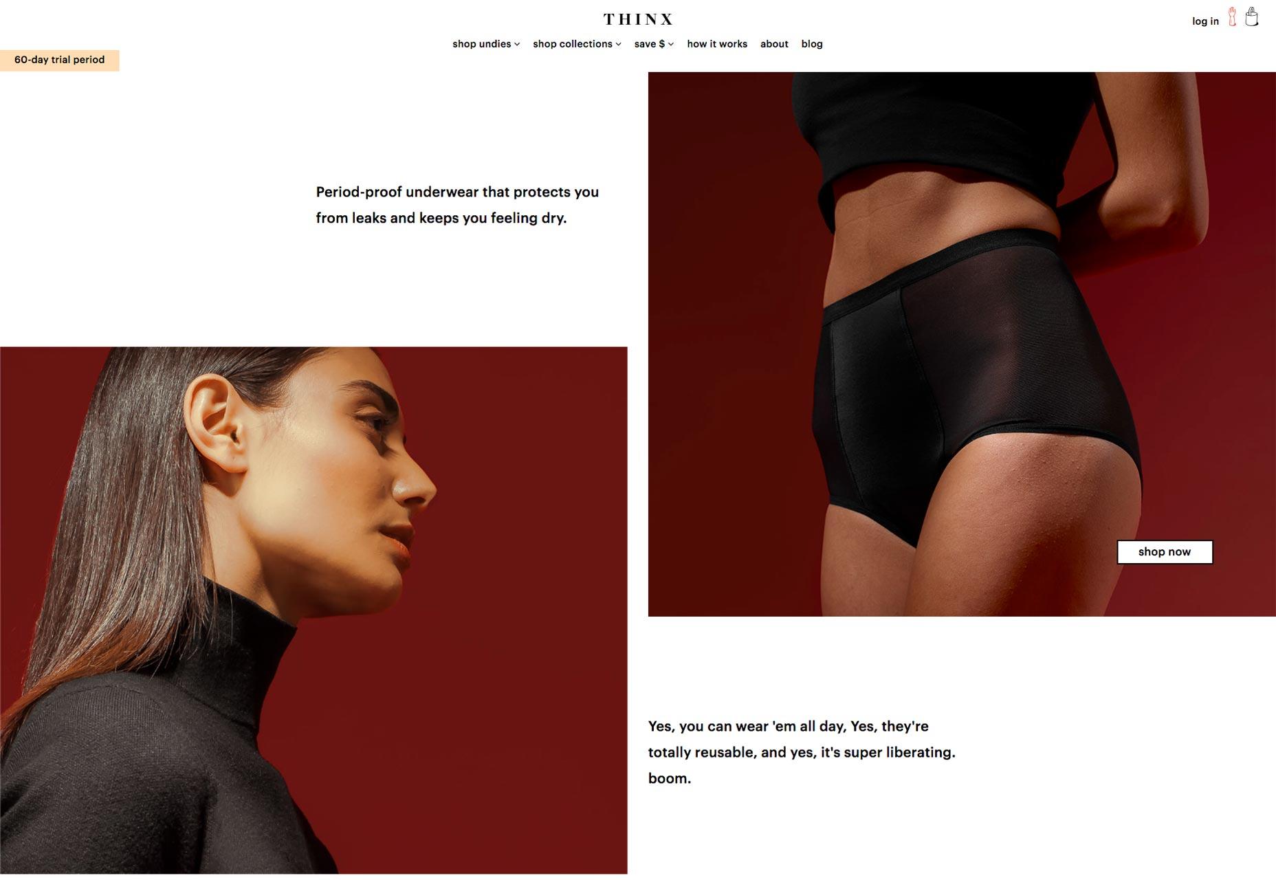 Thinx 這個(gè)案例我非常喜歡,并且經(jīng)常會(huì)用到,因?yàn)樗C明了設(shè)計(jì)師并不一定非得靠高飽和度的霓虹色來(lái)創(chuàng)造高對(duì)比度的配色。即使是兩種平衡的顏色,也能讓整個(gè)設(shè)計(jì)脫穎而出。